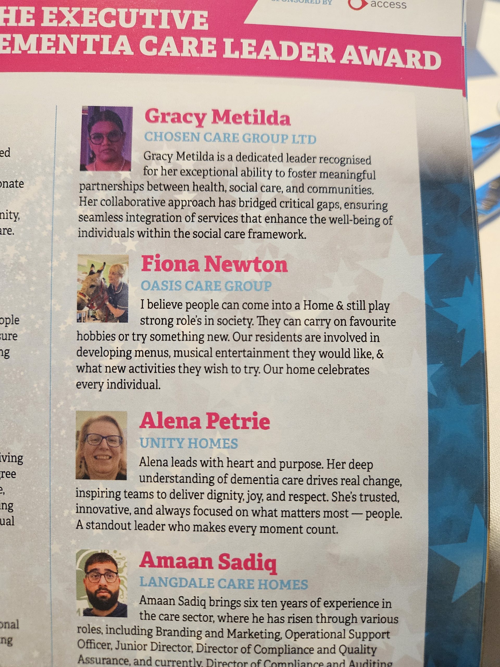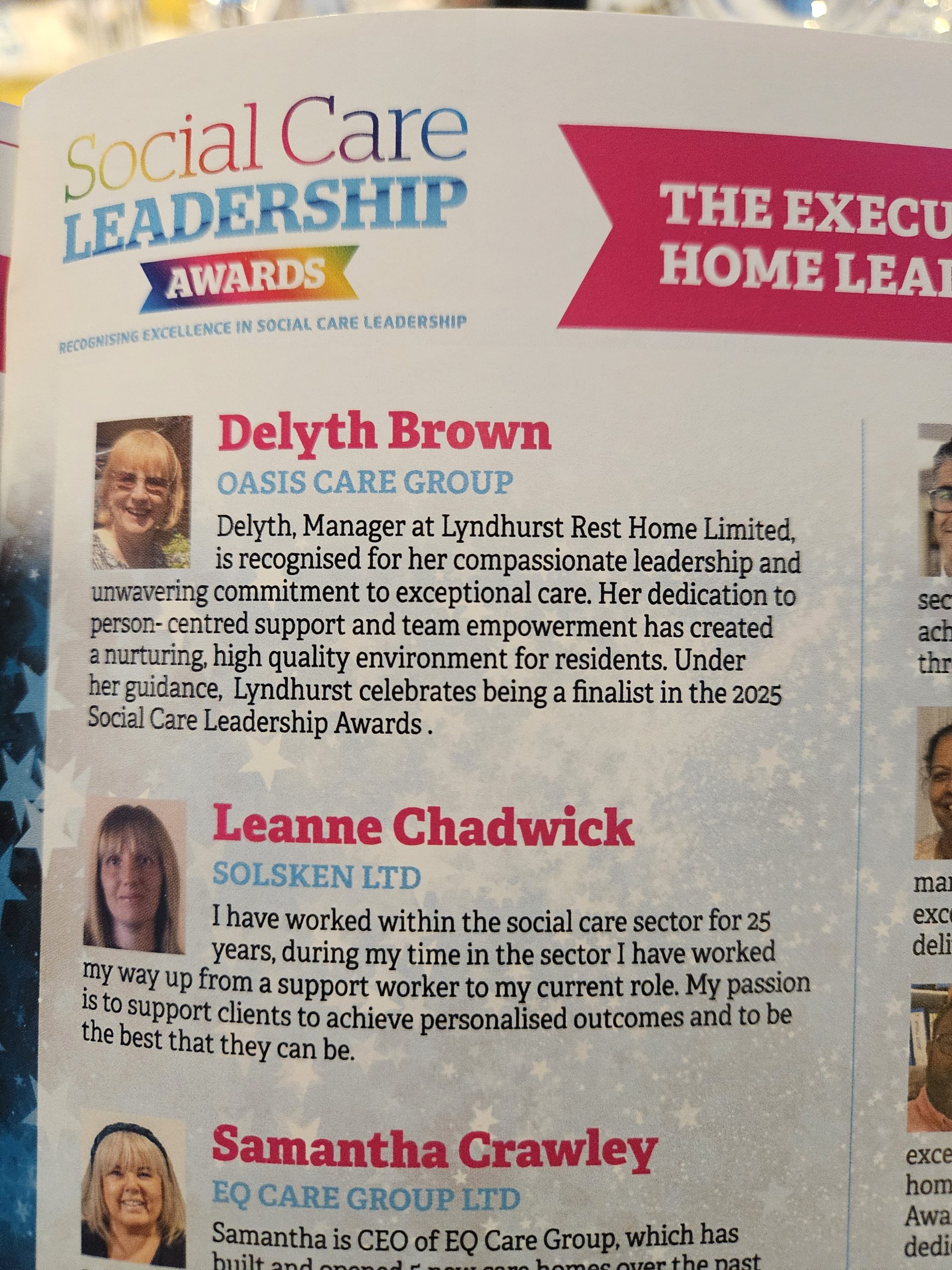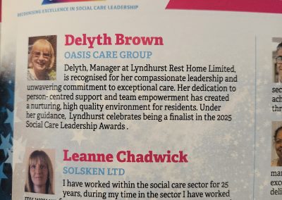 Each nomination and win reflects the shared values that define Oasis Care Group: kindness, teamwork, and a genuine passion for providing the very best care. We believe that recognition in our sector shines a light not only on our success, but on the dedication of everyone who supports our residents and their families.
